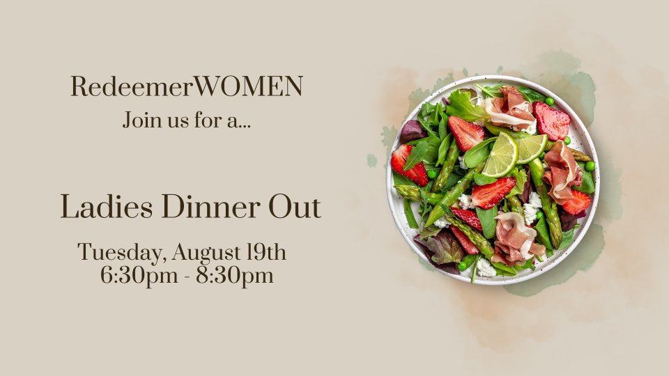 Come out to meet up with other RedeemerWOMEN for dinner and fellowship and an after-summer reconnect at Glory Days Grill at 11310 Causeway Blvd, in Brandon. We will have a section in the restaurant for us, and their menu is varied and extensive. Everyone will get and be responsible for their own checks.