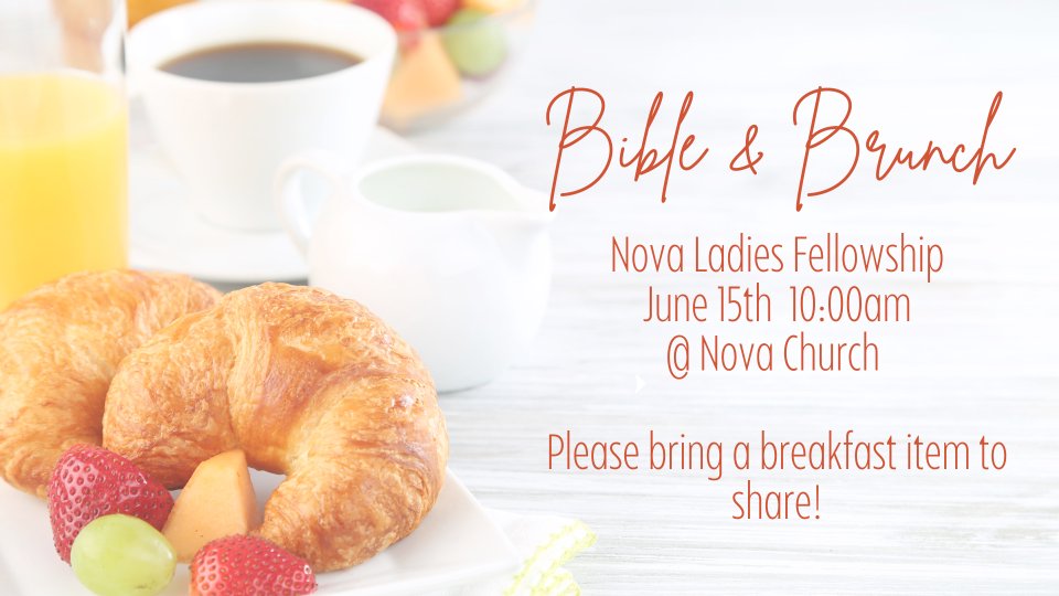Come join the Nova ladies for a morning of Bible devotion and brunch! Please bring a breakfast item to share.