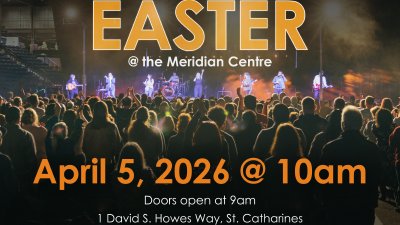 You're invited to celebrate Easter Sunday with us at the Meridian Centre! Join us for a powerful message, amazing worship and meaningful fellowship as we celebrate the hope and joy of Easter together. Doors open at 9:00 am Service begins promptly at 10:00 am This is a free event, and everyone is welcome. We would truly love for you to join us and bring your family and friends! Parking is available downtown: Garden Park/Carlisle Street Parking Garage- 71 Carlisle Street Ontario Street Parking Garage - 8 Ontario Street