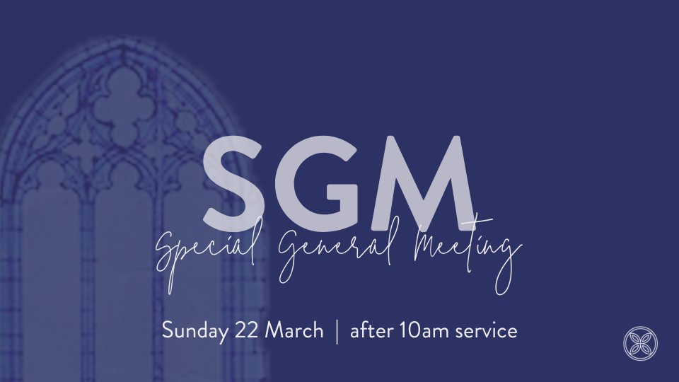 We’re holding a Special General Meeting on Sunday 22 March at 11:450am. We'll meet in the Lady Chapel after the 10am service; you're welcome to join us.