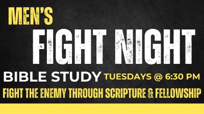 Join us for our Tuesday Family Fight Night! Women of all ages are welcome to join us in the Downstairs Adult Classroom at 6:30pm for a devotional and a time of prayer. Come fight the enemy as we pray over our children and stand in the gap between them and the devil. We hope to see you there!