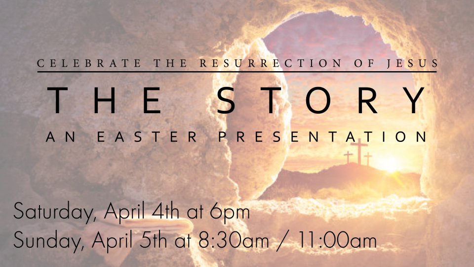 We are celebrating the Resurrection with a special presentation, The Story, performed by choir and orchestra. Invite others for this special day!