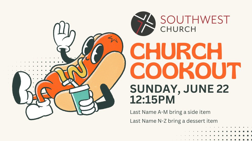 Stick around after service for a fun and relaxed church cookout! We’ll fire up the grill, enjoy good food, and spend time building community with one another. It’s a great chance to meet new faces, catch up with friends, and let the kids play while the burgers sizzle. If your last name starts with A–M, please bring a side dish. If it starts with N–Z, bring a dessert to share. See you there! RSVP online.
