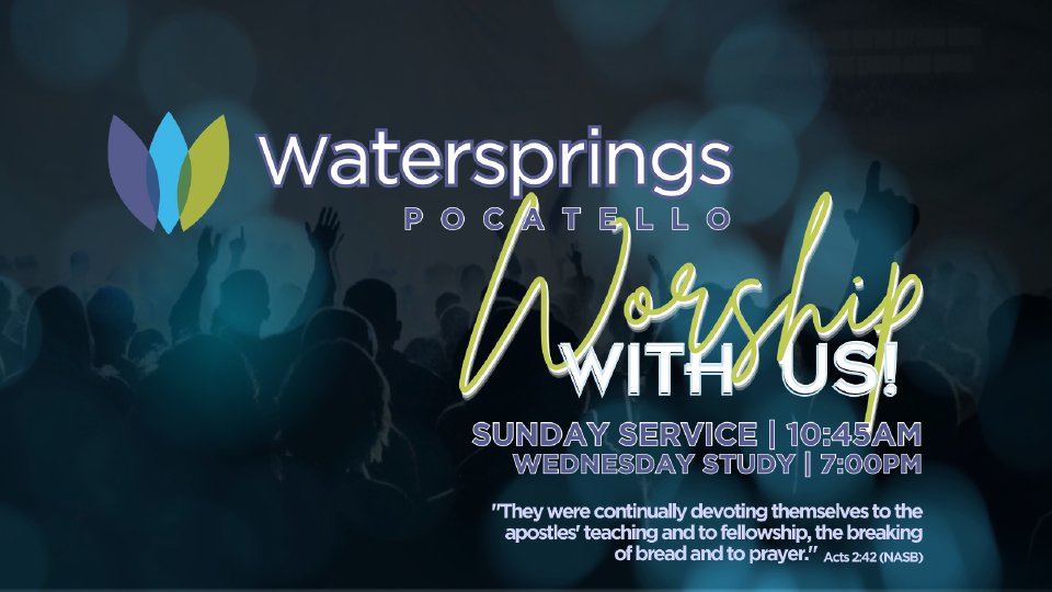Please join us every Sunday morning at 10:45 at the Riverwoods Reception Center. We offer childcare: Newborn-9 years old. Communion is celebrated every third Sunday. We would be honored for you to call Watersprings Pocatello your Home Church.