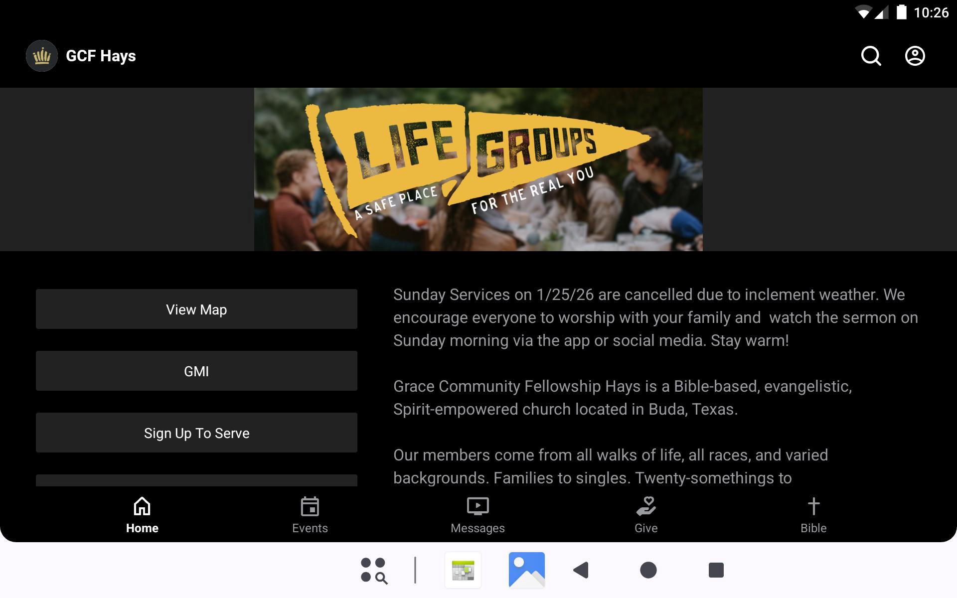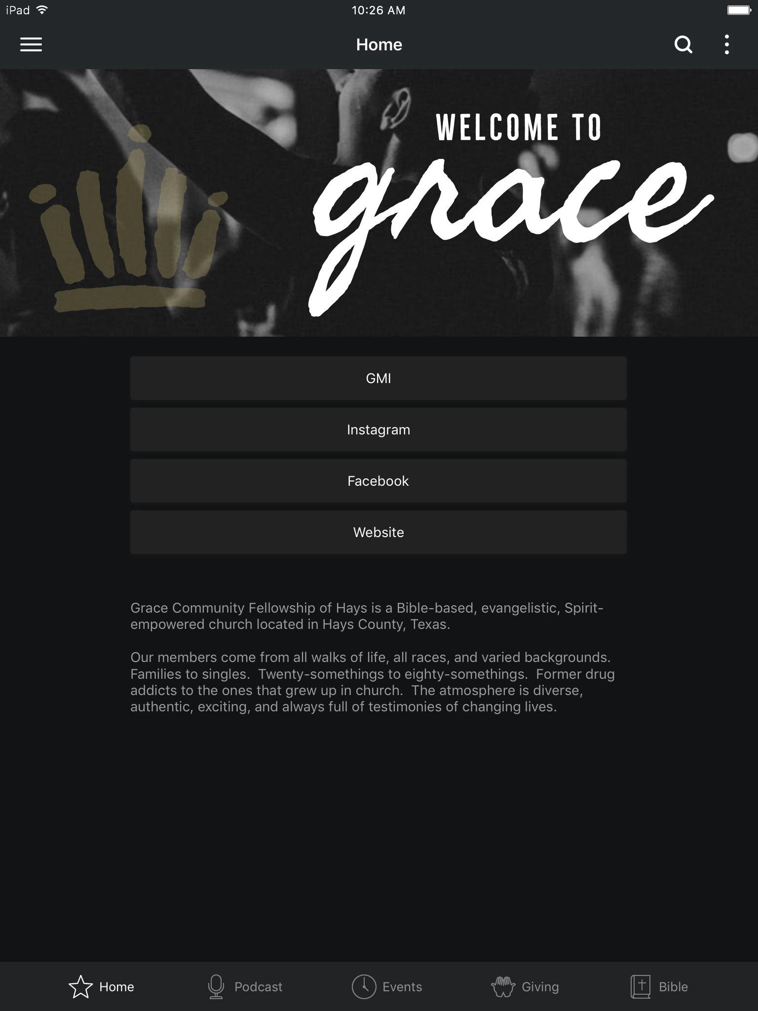 Grace Community Fellowship is a warm, friendly, growing, and dynamic church. Our free mobile app helps keep you connected on-the-go so you'll never miss what's new and happening across our church family. FEATURES - Stream and download weekly messages - View upcoming events and easily add to your mobile calendar - Get Life Group discussion questions - Mobile giving - Get service times and directions - And much more! The GCF Hays App was created with the Subsplash App Platform.