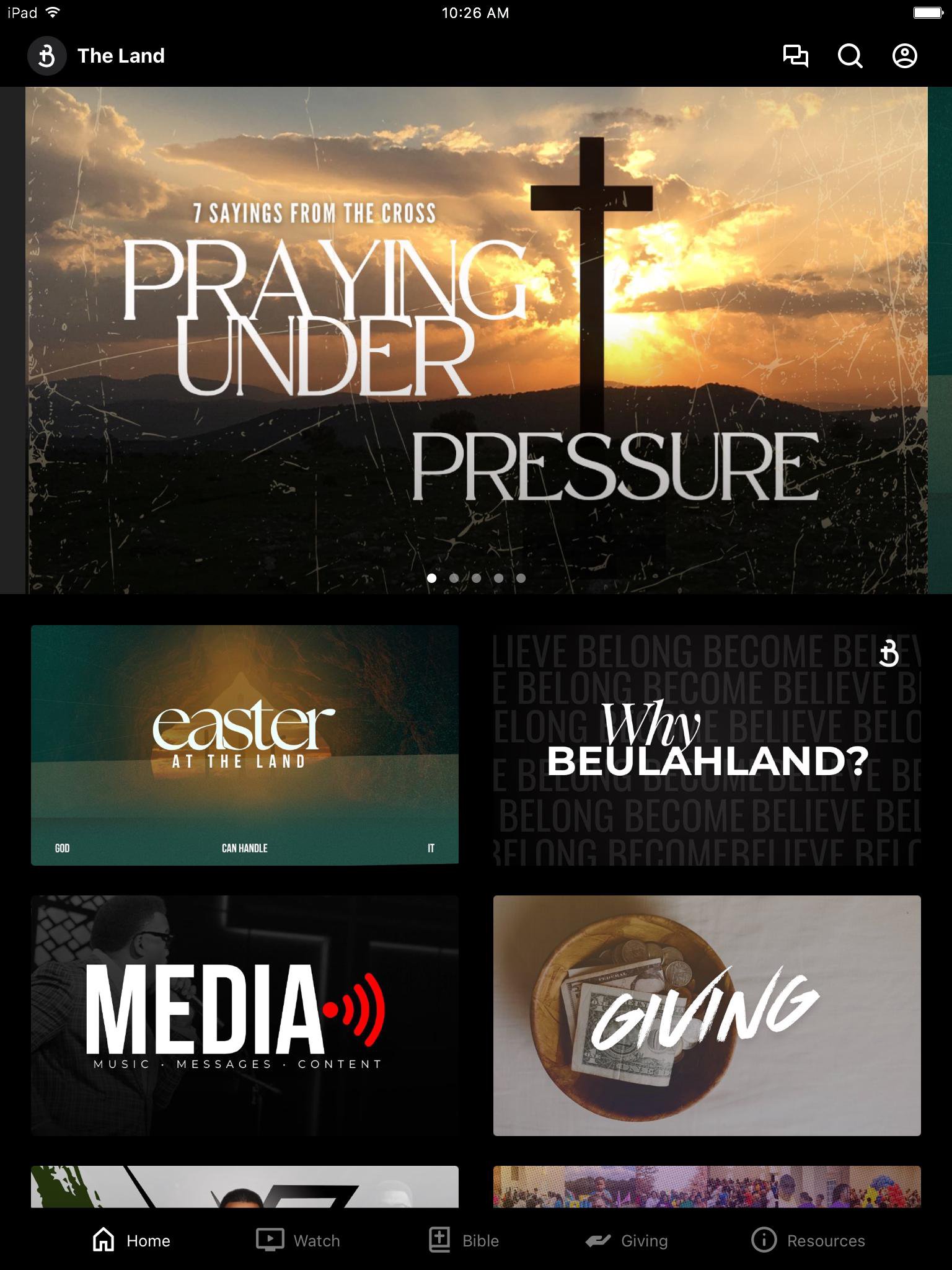 This app will help you stay connected with the day-to-day life at The Land. With this app, you can watch or listen to past messages, stay updated with push notifications, read the Bible, and view our latest events.