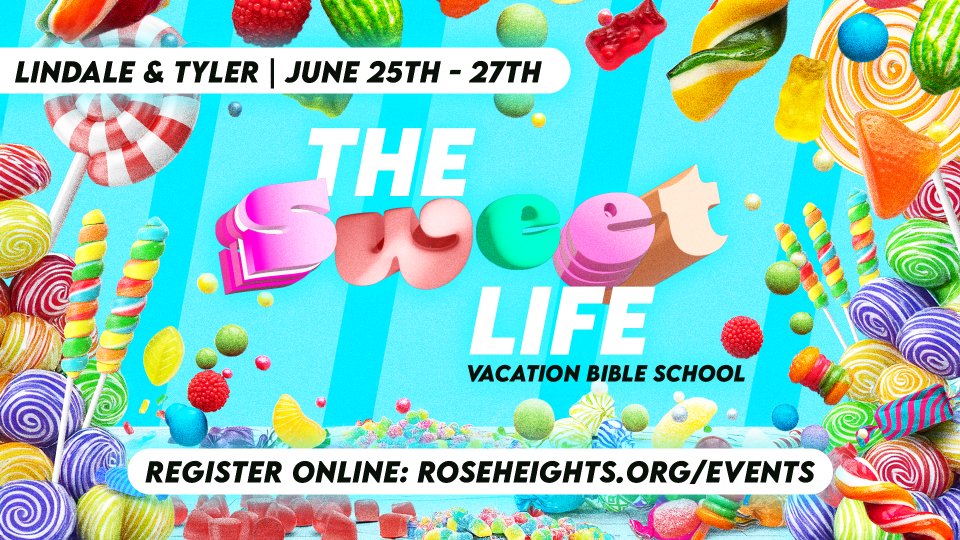 We're thrilled to invite your kids to The Sweet Life Vacation Bible School, happening at both our Tyler and Lindale campuses! Mark your calendars for June 25th-June 27th, from 6-8 PM each evening.