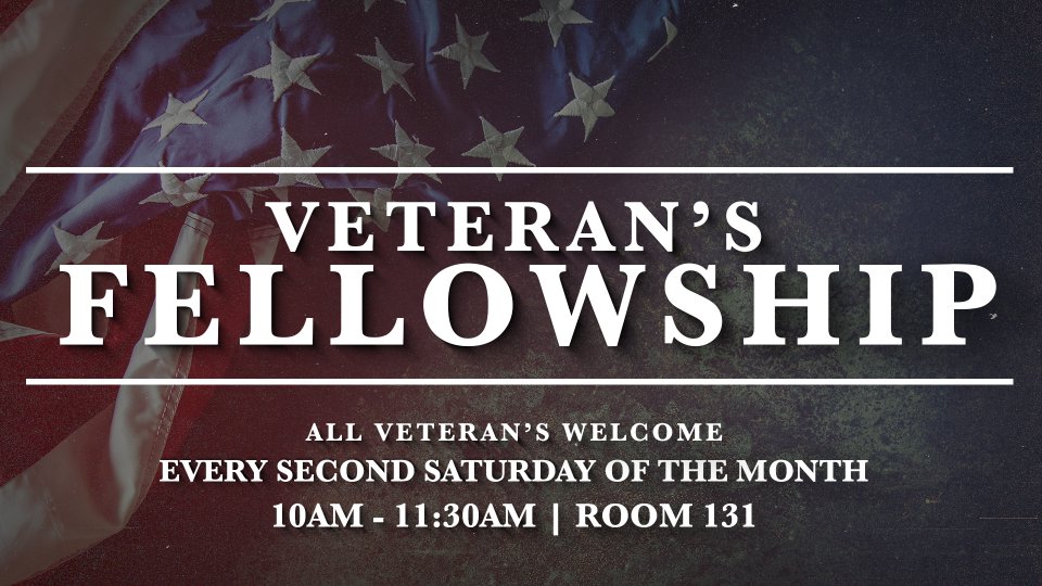 Ladies and gents, if you are a veteran, come join us every 2nd Saturday of the month from 10am - 11:30am in Room 131. We'll have a great time of fellowship together each month. See you there!