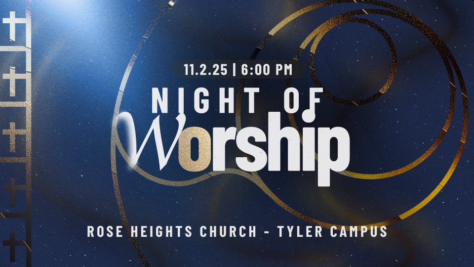 Join us for a powerful Night of Worship at our Tyler Campus on Nov 2nd from 6 - 7:30 PM! This special event is open to both campuses and offers a time of heartfelt worship and community. Bring your family and experience a night of praise together. Childcare will be available for children ages 5 and under. See you there!