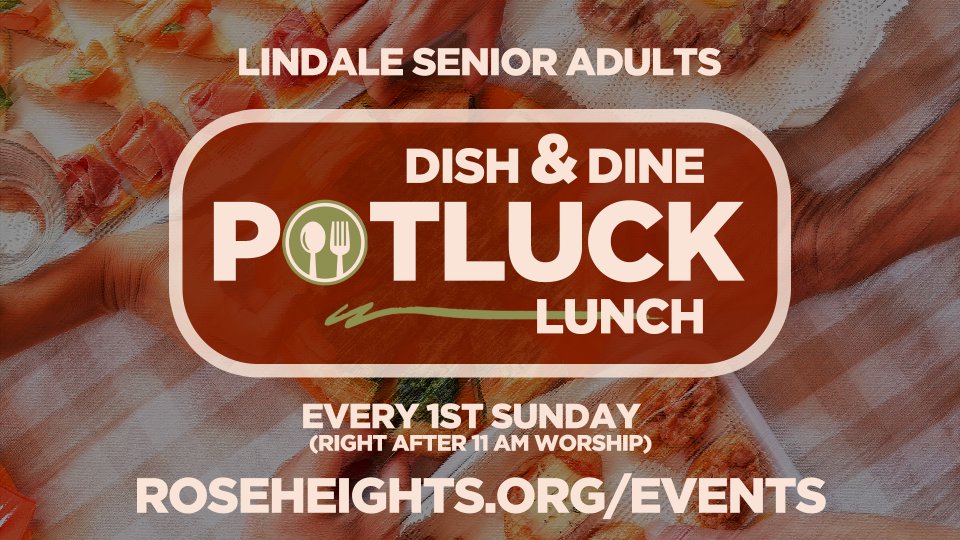 Senior Adults, join us for a special potluck lunch filled with delicious food and great fellowship—immediately following the 11:00 AM service. Bring your favorite dish to share and enjoy a relaxed afternoon together.