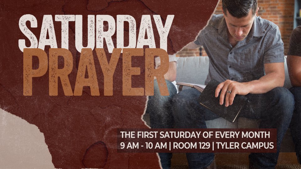 Join us in the Prayer Room (#129) every 1st Saturday of the month from 9:00am to 10:00am for a special time of prayer. We will be praying for our church leaders, ministry teams, small groups, mission partners, and weekend services. This one-hour prayer gathering will include worship, individual prayer time, and coming together for prayer as a group. No need to sign up in advance - just show up and join us in prayer! For more information, contact Pastor Darryl.