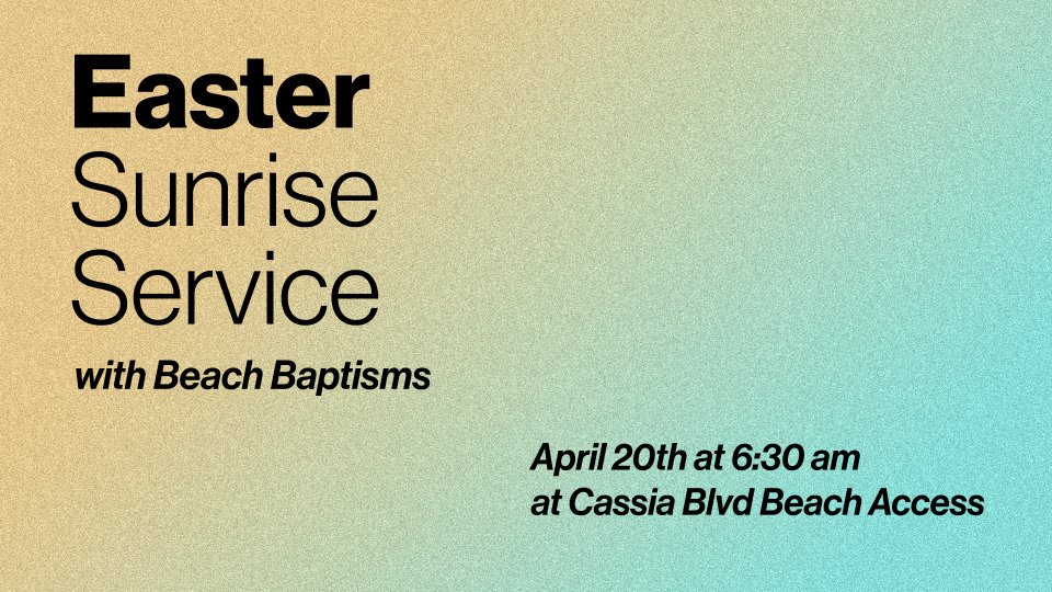 He Has Risen!! We will once again gather at the beach access located on A1A (Jimmy Buffett Memorial Highway) at Cassia Blvd across the street from the Groove Shack and Las Monarcas. Our service will feature praise and worship, a special message from Pastor Chris and baptisms in the ocean to follow. Be sure to bring a beach blanket or a chair if you desire to relax with us.