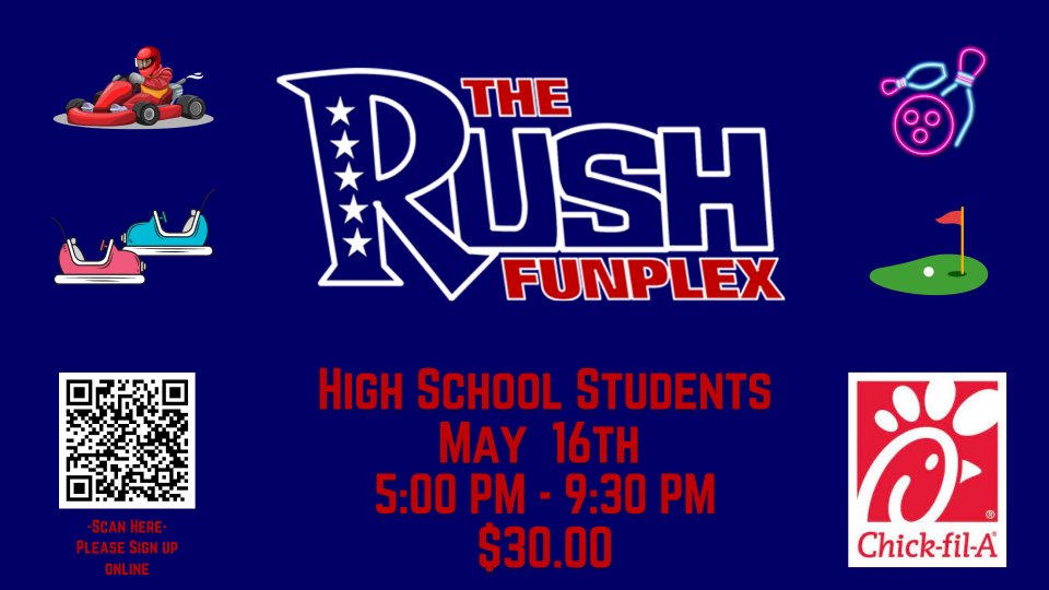 High School Youth Ministry is heading to The Rush Funplex to celebrate