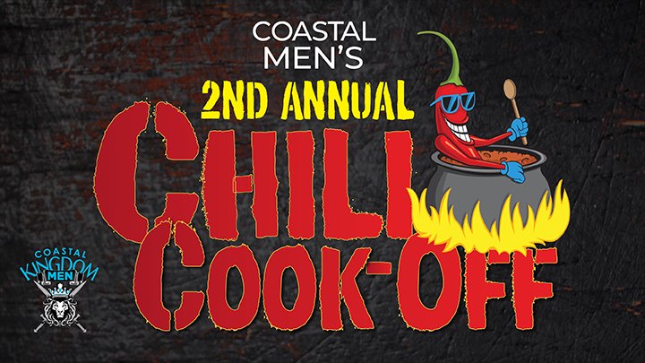 Men, we are going to have a blast at Coastal Kingdom Men's 2nd Annual Chili Cook-off. Twelve of our very own will be competing for bragging rights to THE BEST chili, plus we'll have outdoor games, activities, and good ole male camaraderie! Open to men ages 10 & up, this event is free to attend! Feel free to invite your friends and neighbors to join us in a great evening of fun and bonding together as brothers in Christ.