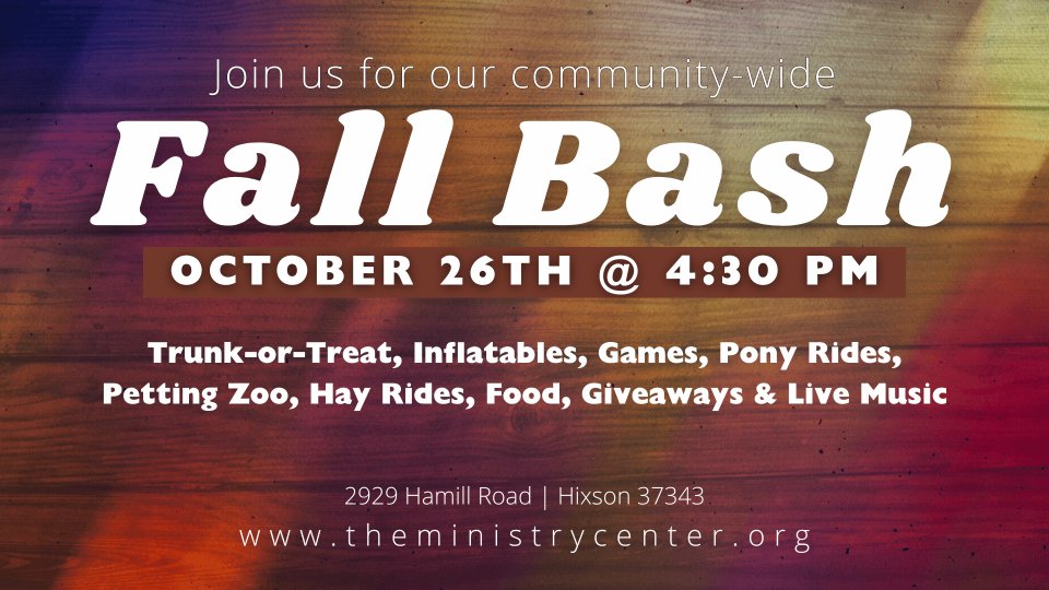 TMC Fall Bash is back! Join us on Sunday, October 26 at 4:30 PM for a community-wide evening of fun. Enjoy trunk-or-treat, games, inflatables, pony rides, a petting zoo, hay rides, face painting, balloon twisting, food, giveaways, and live music from FRESH MIND. This free, family-friendly event is open to everyone. Invite your friends and neighbors and celebrate fall with us!