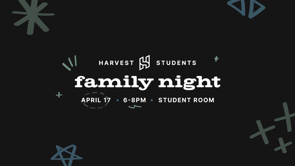 This evening is a great opportunity for parents to catch the mission and vision of Harvest Students and get a first look at where the ministry is headed. It’s a night designed for building community, so come ready to connect over some food and plenty of fun games.