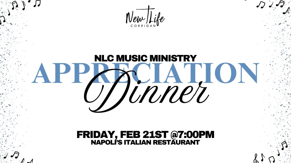 This is for anyone involved in music ministry (sound, media, live, vocals, instruments). We want to show our appreciation for your dedication and hard work for NLC!