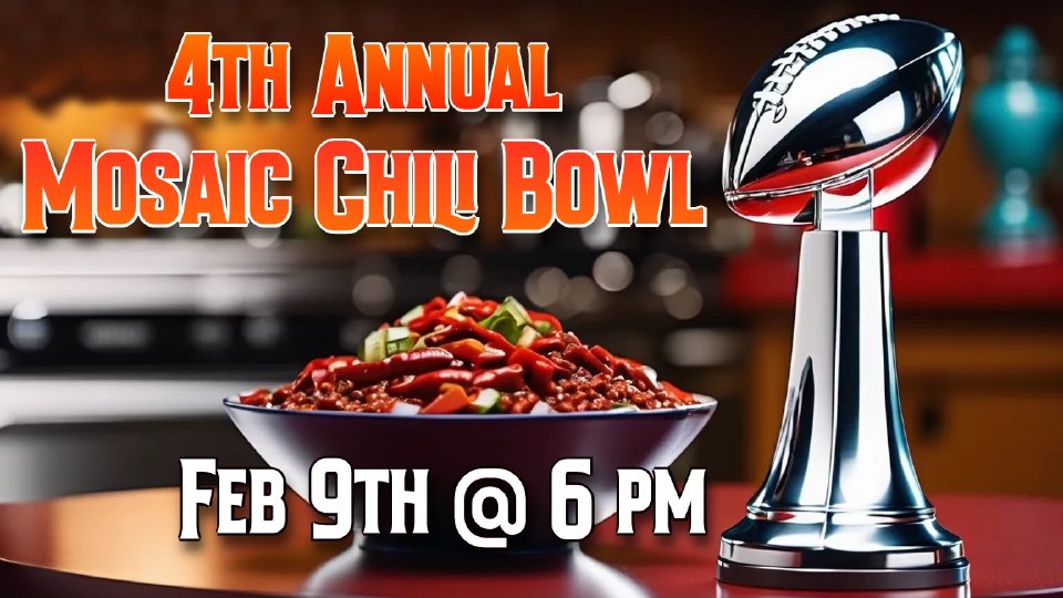 Come and cook your best chili. Please register if you are a contestant by choosing the contestant registration. If you are simply attending the event, please register under general admission and indicate what you are bringing to share with everyone (drinks, snacks, apps, desserts). If you are competing, you can download a copy of the scoring card here to find out what the judges will look for. Chili Bowl Score Card
