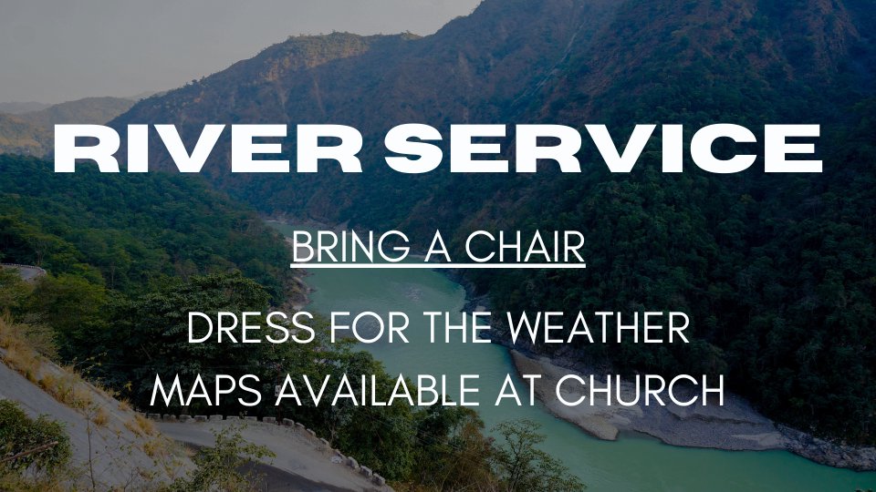 Join us as we meet together at the river for a special service this week! We will be joining in worship with Cornerstone Church! Lunch is provided. Bring a chair and remember to dress for the weather. Maps are available at the church to help with directions.