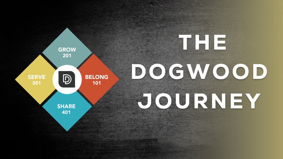 DOGWOOD JOURNEY is a series of classes uniquely designed to help you take your next steps with God. In these classes, you will discover what it means to BELONG to a church family, GROW in your discipleship through God's word, shape your unique gifts to SERVE, and get equipped to SHARE your personal Jesus story.