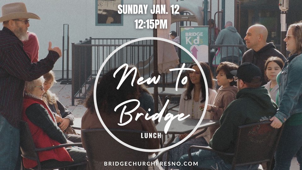 If you’re new, an easy next step for you is to check out our New To Bridge Lunch. This is an easy next step on your spiritual journey. Come spend lunch with Pastor Andrew, some of the staff and get to know us and what we’re all about. We look forward to meeting you, you’re important to us.