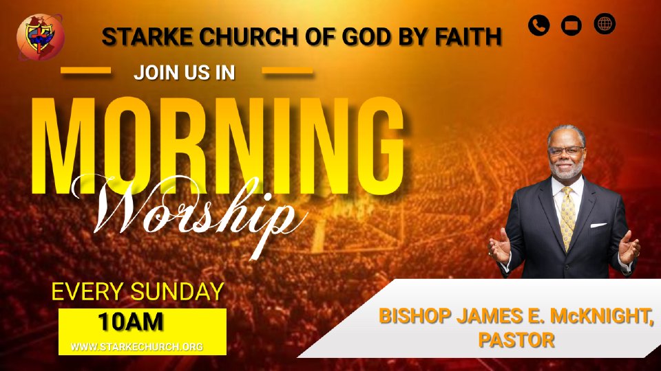 Join us! YOU, YES YOU! are welcome! Online: www.starkechurch.org, Facebook or Youtube: StarkeCOGBF or come on in! Sunday School *8:30 am Worship Serice *10:00 am