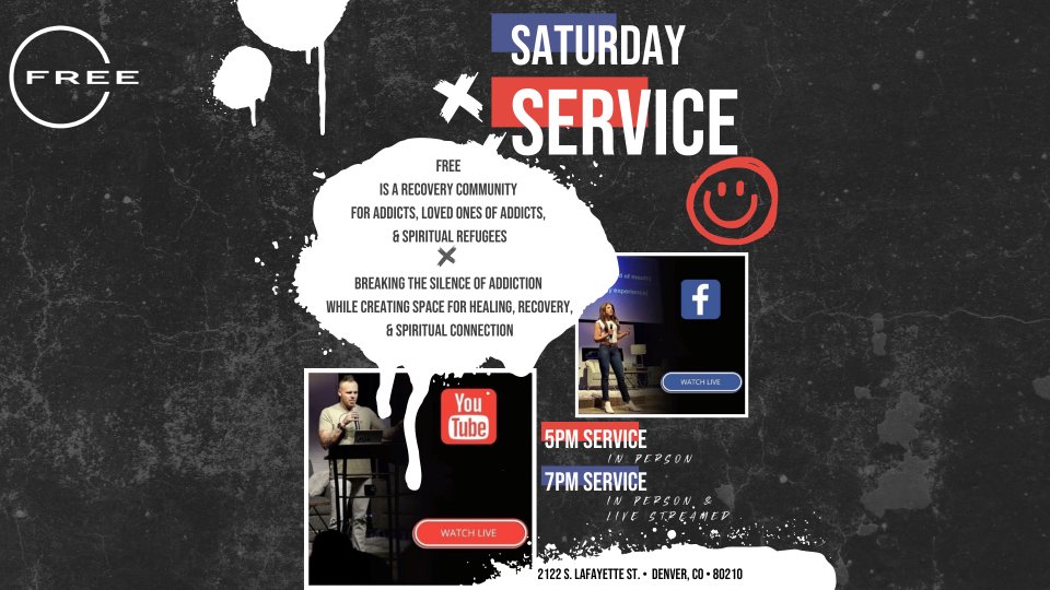 FREE is a recovery community for addicts, loved ones of addicts, & spiritual refugees. Breaking the silence of addiction while creating space for healing, recovery, & spiritual connection. 5pm – In Person Service 7pm – In Person Service and Streaming Online