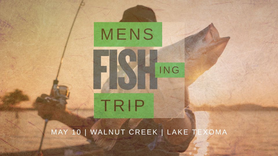 Men, join us for a fishing trip on May 10 at Walnut Creek Resort & Marina, located on Lake Texoma! This is an awesome, guided fishing experience where all the fishing tackle and bait is provided, and the fish you catch are filleted, bagged, and placed in provided coolers to take home. Afterwards, you'll be welcomed to join us for an optional lunch at the Villa Grande Mexican Restaurant in Gainesville (additional cost/not included in the registration fee). Cost is $160 per person, and we hope you'll register for this special day of fishing and hanging out!