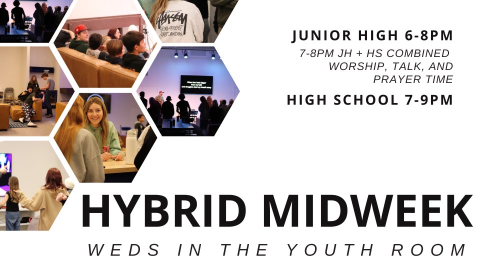 6pm-7pm: Junior High specific hangout and game time in the Youth Room.