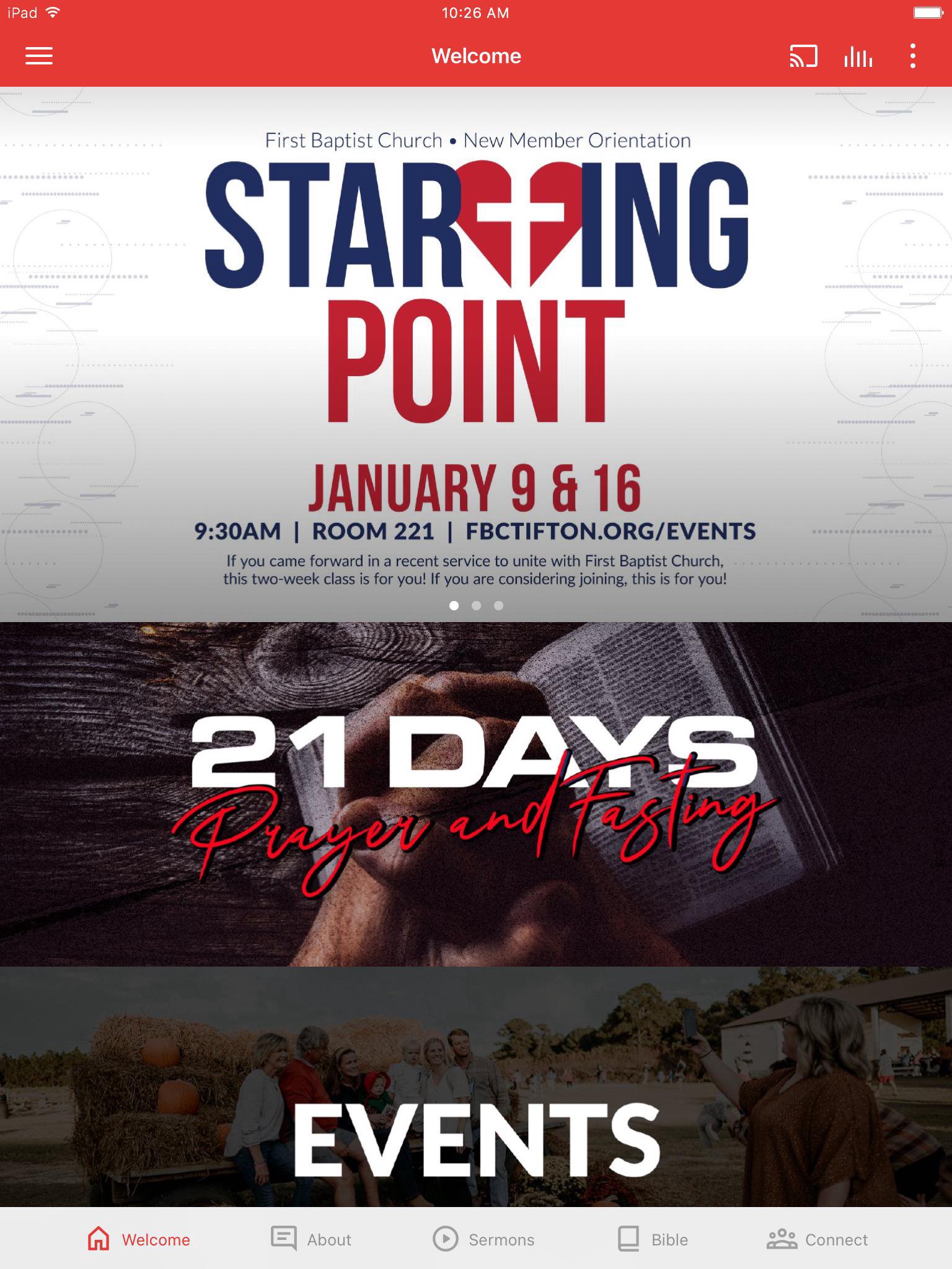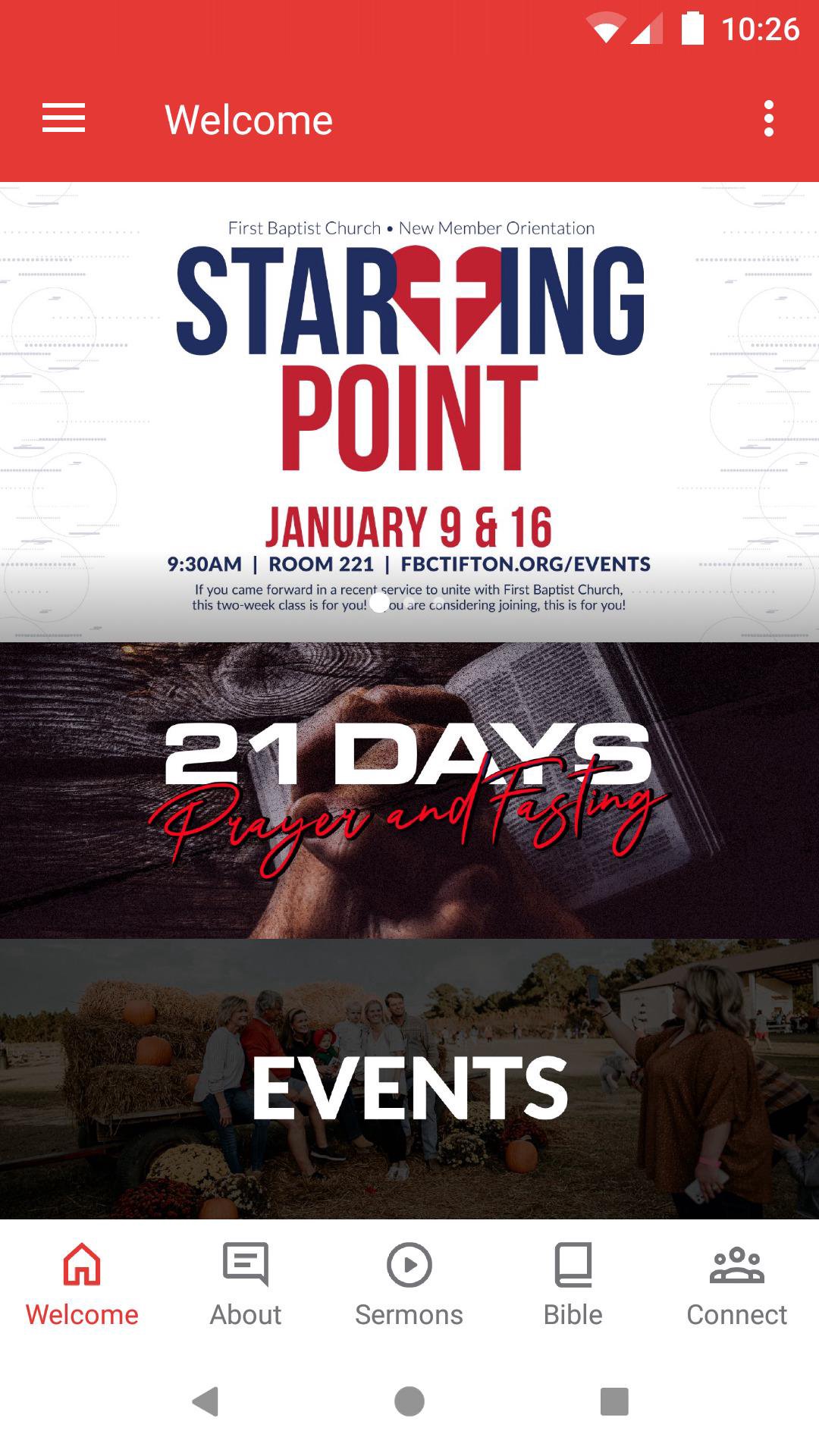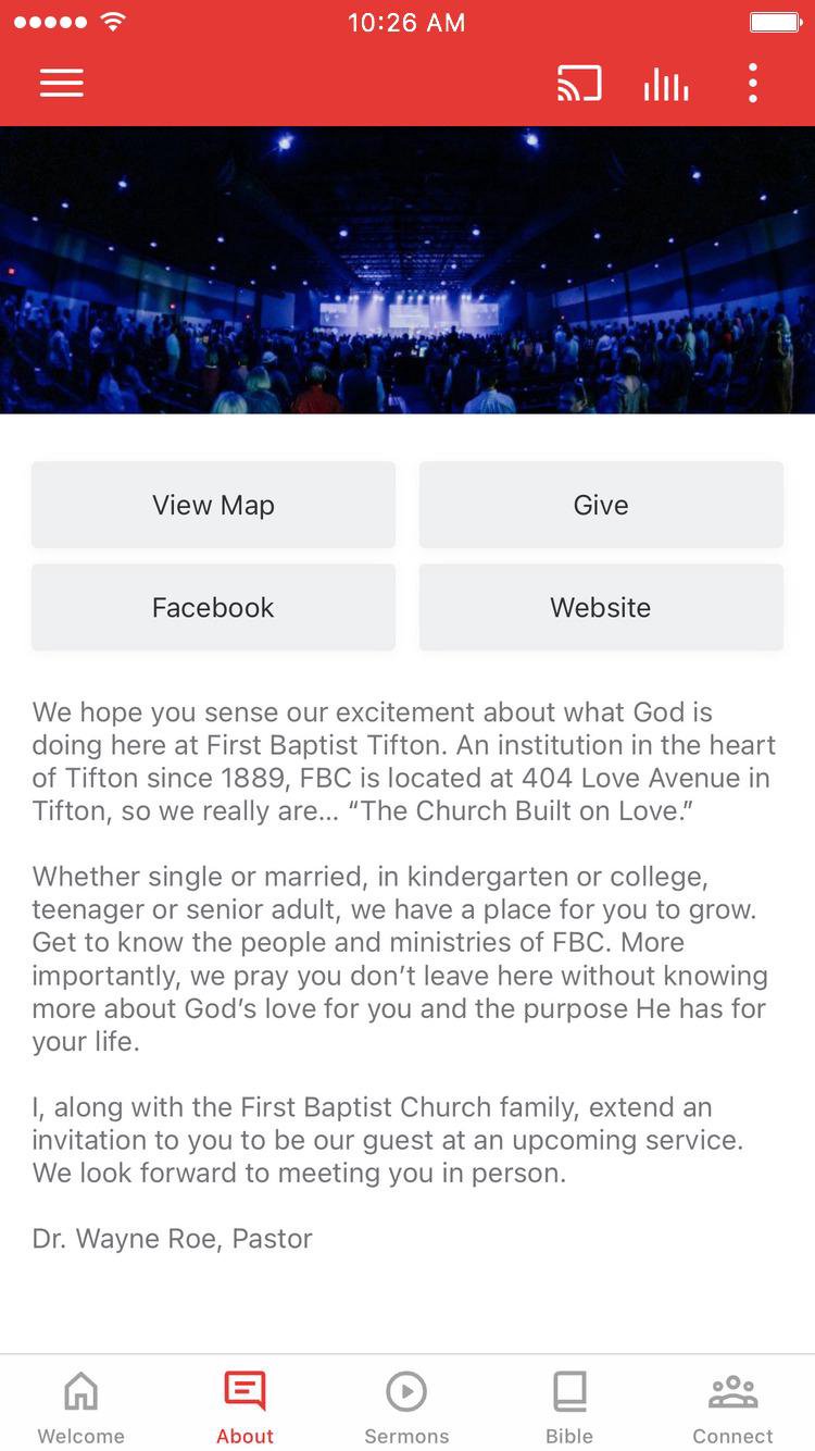 The FBC Tifton app will help you stay connected with the day-to-day life of FBC Tifton. With this app you can: - Connect with us - Stay up to date with push notifications - Share your favorite messages via Instagram, Facebook, or email - View and register for events