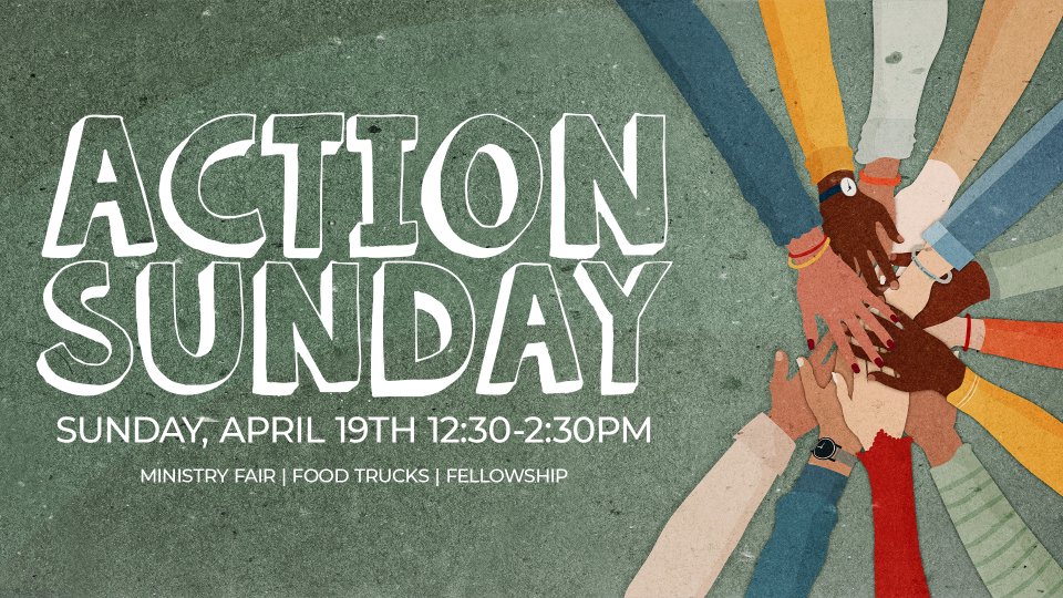 Join us Sunday, April 19th from 12:30-2:30pm for Action Sunday in the Fellowship Hall, in the Student Building.