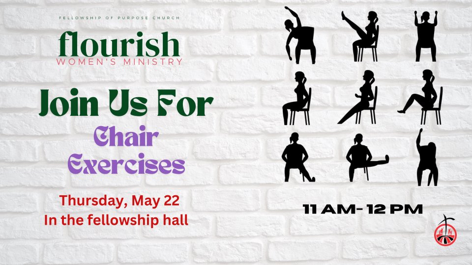 Ladies, join us for a time of fellowship and fun while getting fit with chair exercises.