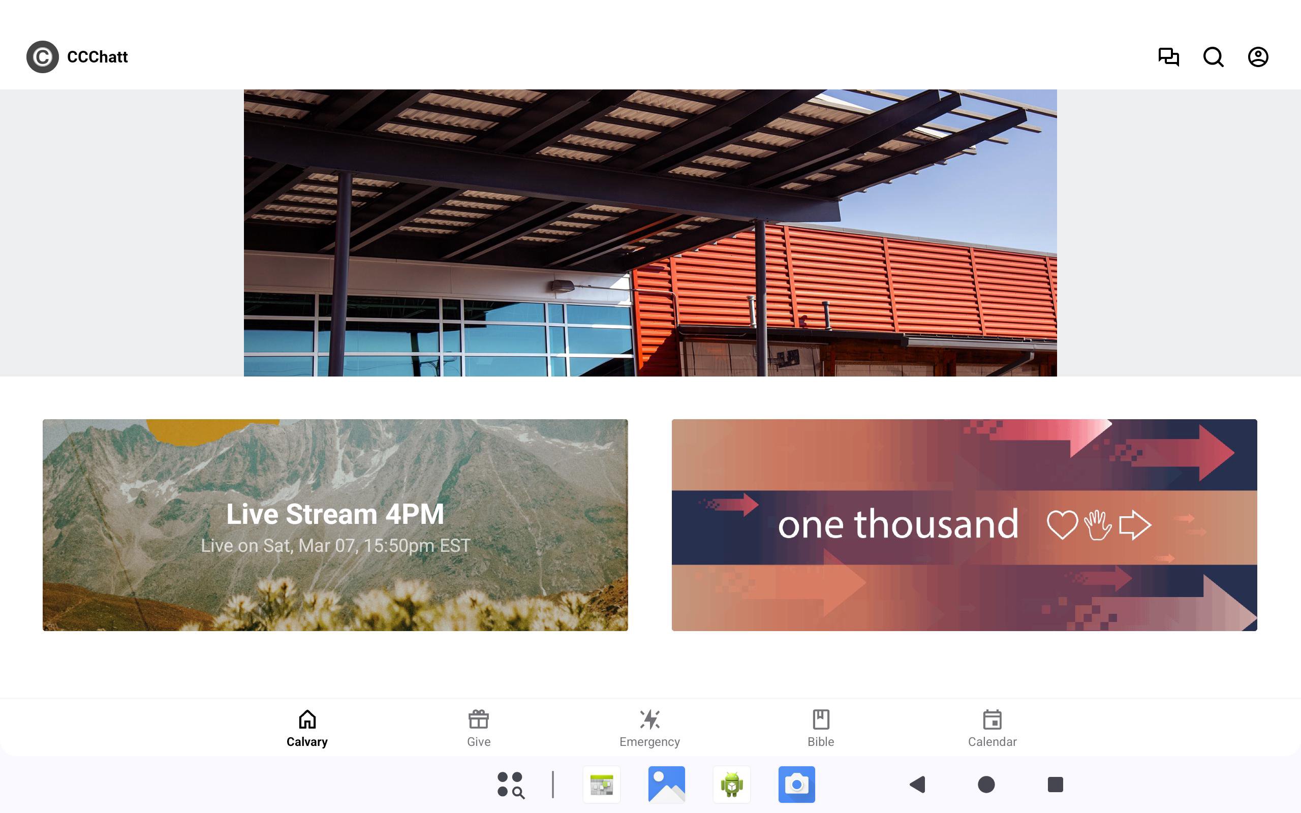 Welcome to the official Calvary Chapel Chattanooga application for your mobile device. At Calvary Chapel Chattanooga, we want to help you find your place in God's story; by Connecting People to God, People to People, and People to Missions. In this app you can watch or listen to teachings, join our reading plan with the in-app Bible, find out what's coming up at church, and even stream our weekend services live from your mobile device! For more information about Calvary Chapel Chattanooga, please visit: http://www.calvarychatt.com The Calvary Chatt app was developed with the Subsplash App Platform.