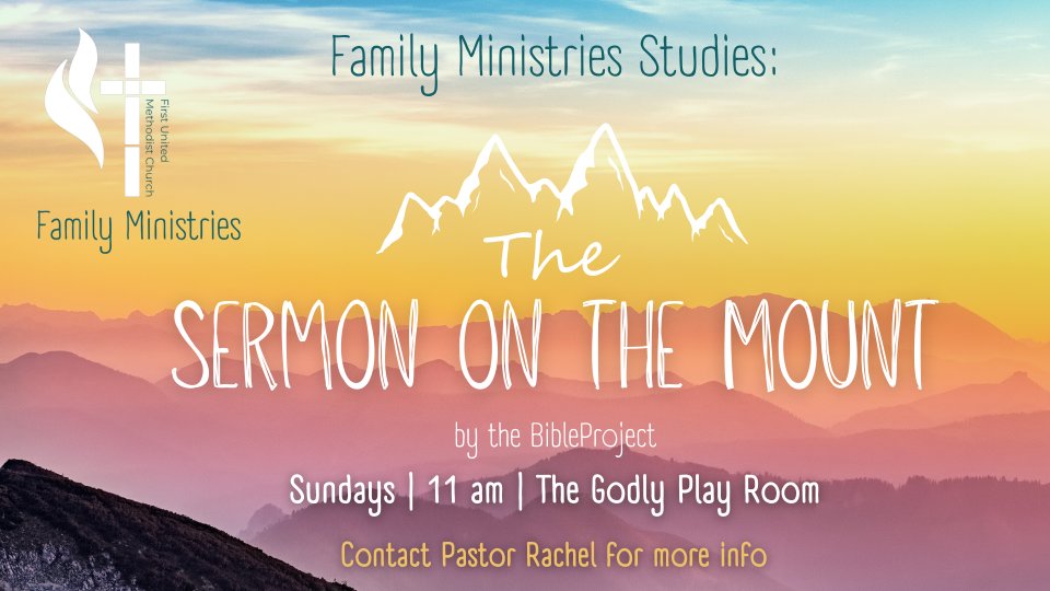 Family Ministries is hosting a Bible study on Sundays at 11AM. This class is for young adults & parents of children and youth. We are currently studying the Sermon on the Mount using resources from the Bible Project.