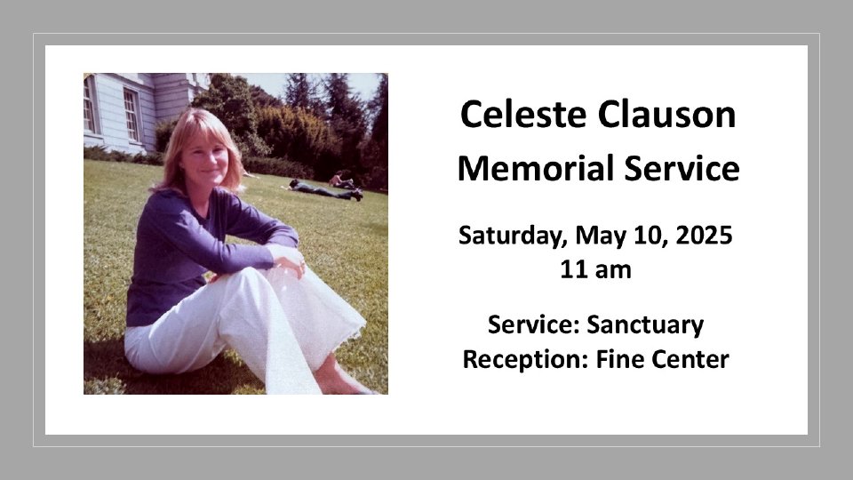 Please join the Clauson family for a memorial service in loving memory of Celeste. They will be sharing their favorite memories and stories as they remember this remarkable person who will be greatly missed. Please bring your photos of Celeste for a scrapbook.