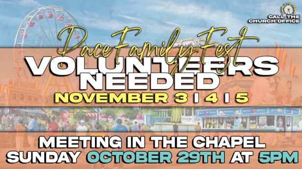 Want to volunteer? Call the Church office @ (850) 202-3100 email us @ info@paceassembly.org or just show up to this final Volunteer meeting!!! YOU ARE NEEDED!!!