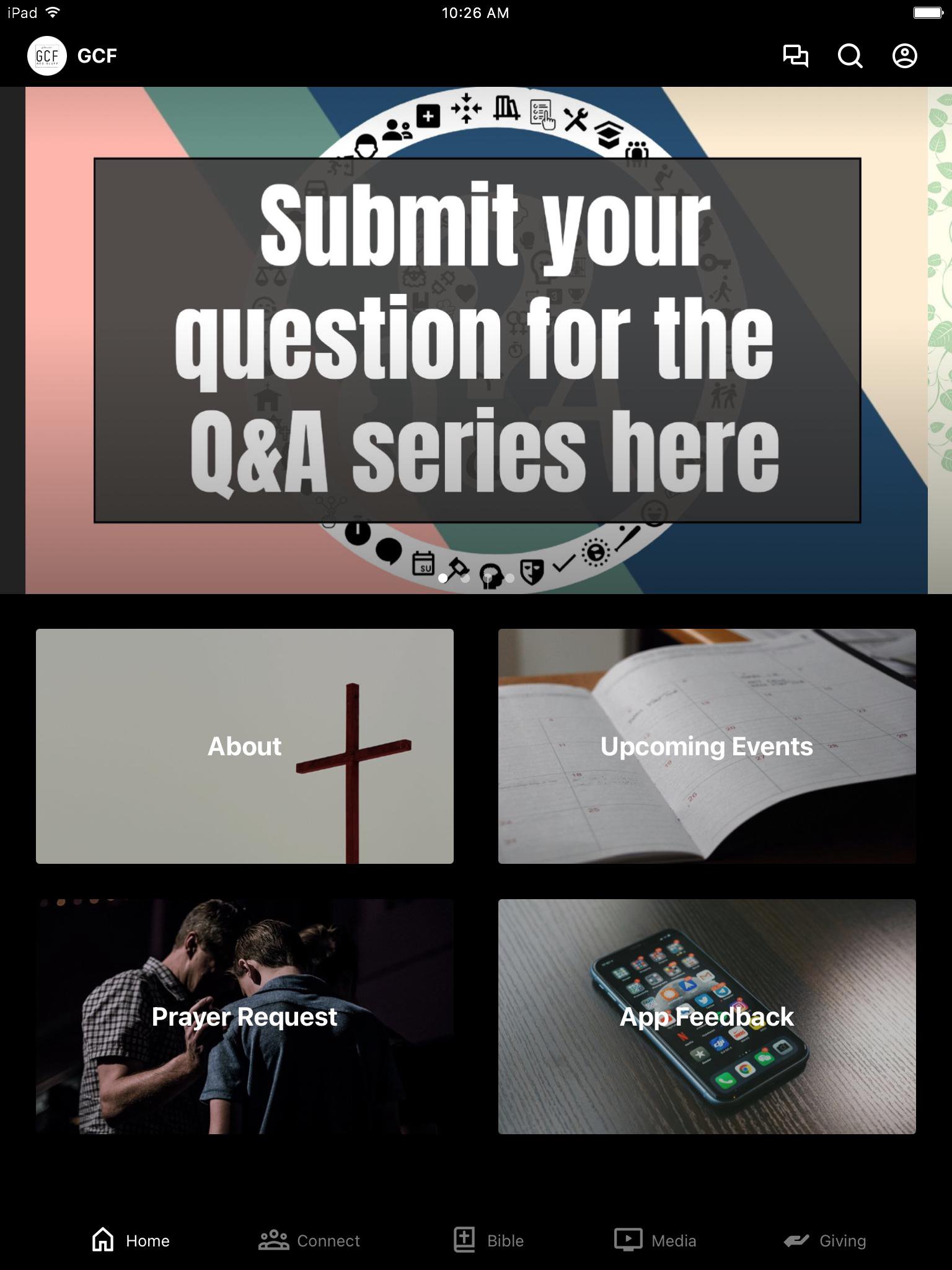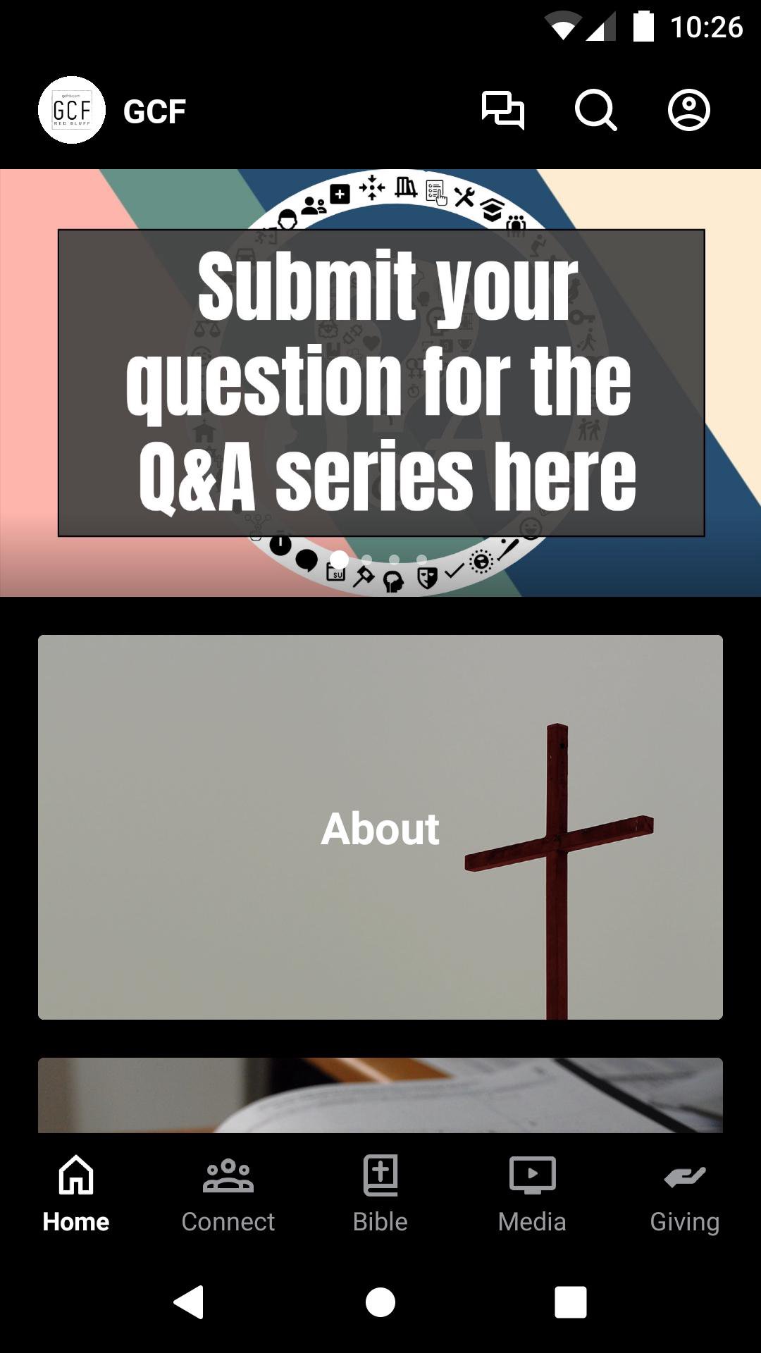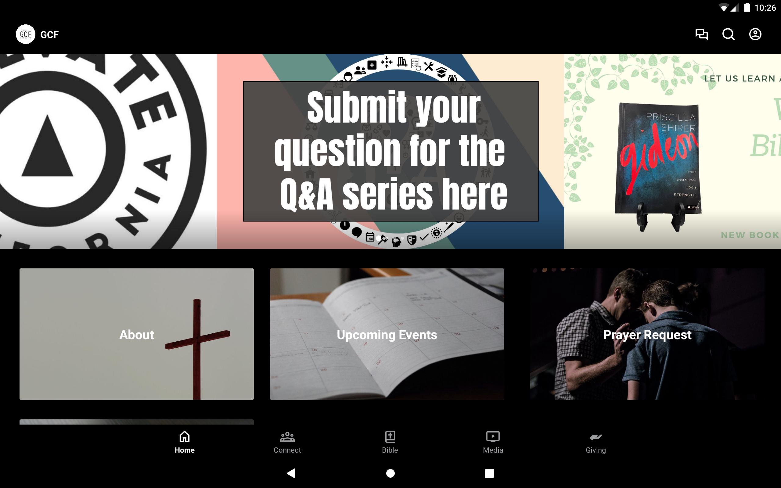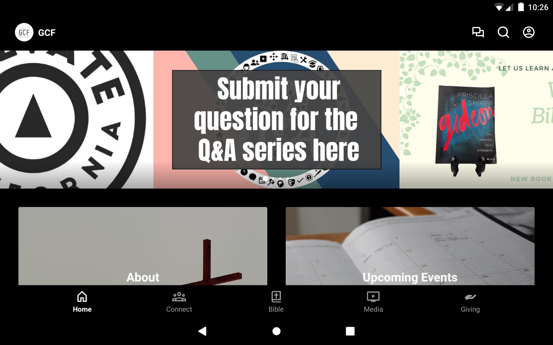 This app will help you stay connected with the day-to-day life of GCF. With this app, you can watch the live service, watch or listen to past services, stay up to date with push notifications, read the Bible, give to support our ministries, and view upcoming events.