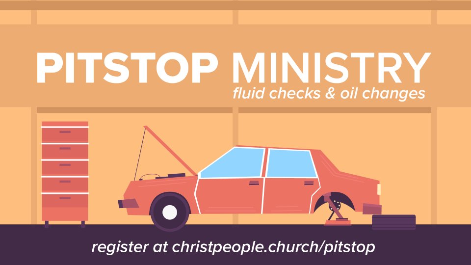 PitStop is a ministry of Christ Church that provides vehicle fluid level checks and oil changes FREE of CHARGE* to those who are in need of just a little help. If you would like to experience this expression of God’s love, please join us in the Christ Church parking lot (14242 E. 21st Street North – Wichita) on the second Saturday of each month. Please note: You must sign up by the Thursday before Pit Stop, BEFORE 3pm in order to make that Saturday's Pit Stop.