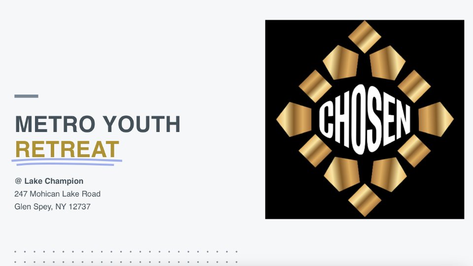 When: March 27th-29th, 2026. We plan to leave from Grace Chapel parking lot by (375 main st, Bedminster) by 5:45pm on Friday with ONE stop for dinner (bring $$) on a coach bus and return the Sunday around 1:30/2pm (no stops).