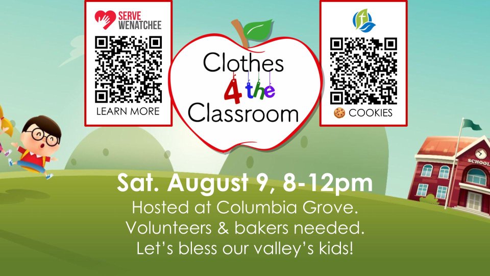 We’re excited to announce that this year’s Clothes 4 the Classroom event will be held right here at Columbia Grove on Saturday, August 9th! This incredible outreach, led by our friends at Serve Wenatchee, provides new clothes—including jeans, shirts, shoes, and socks—for 1,000 local children as they head back to school.