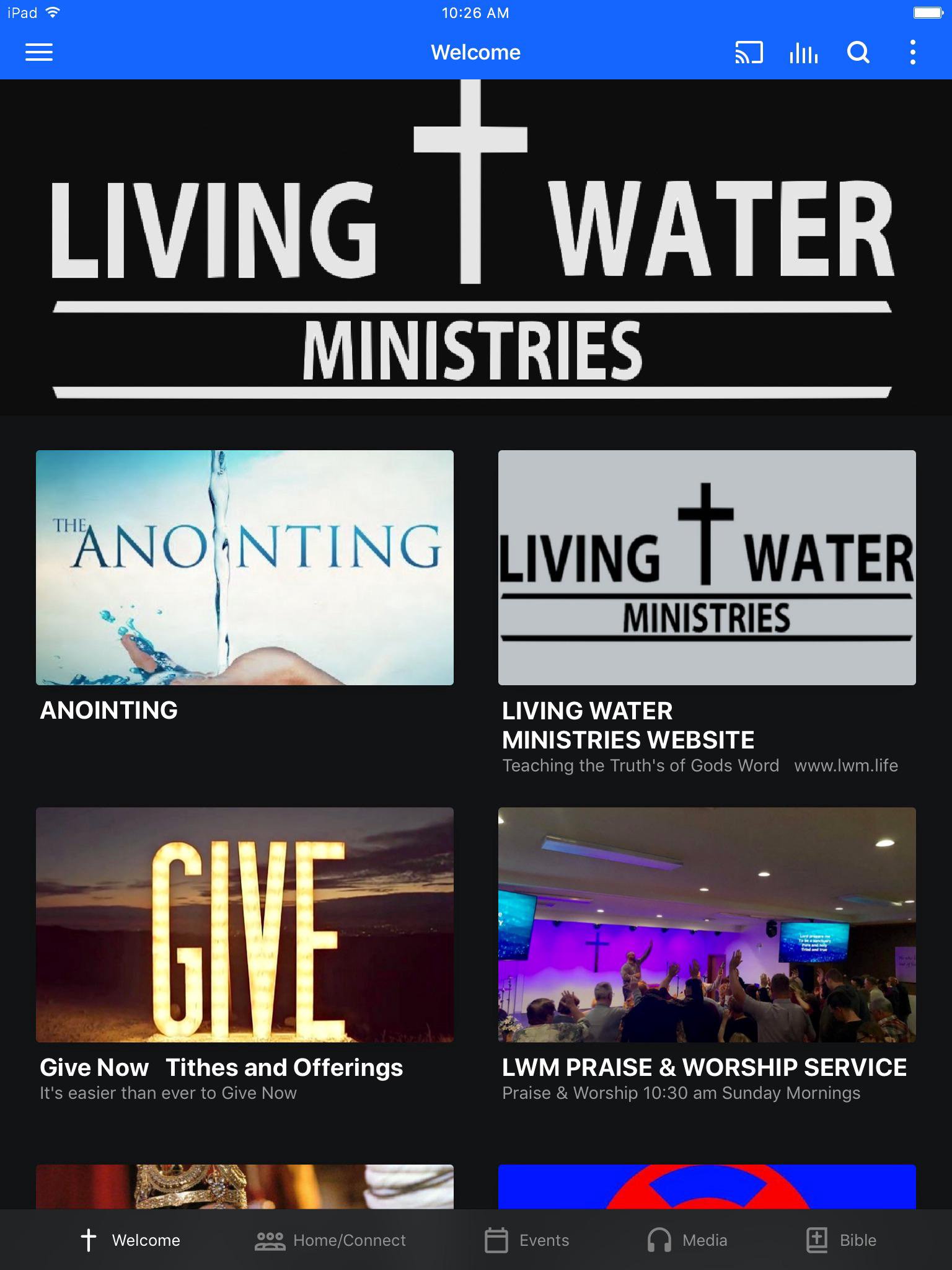 Welcome to the official Living Water Ministries (LWM) app! Check out all kinds of interesting content and share it with friends via Facebook, Twitter, Instagram, or email. For more information about LWM please visit: www.livingwaterministries.net or www.LWM.life The LIVING WATER MINISTRIES - MO App was created with the Subsplash App Platform.