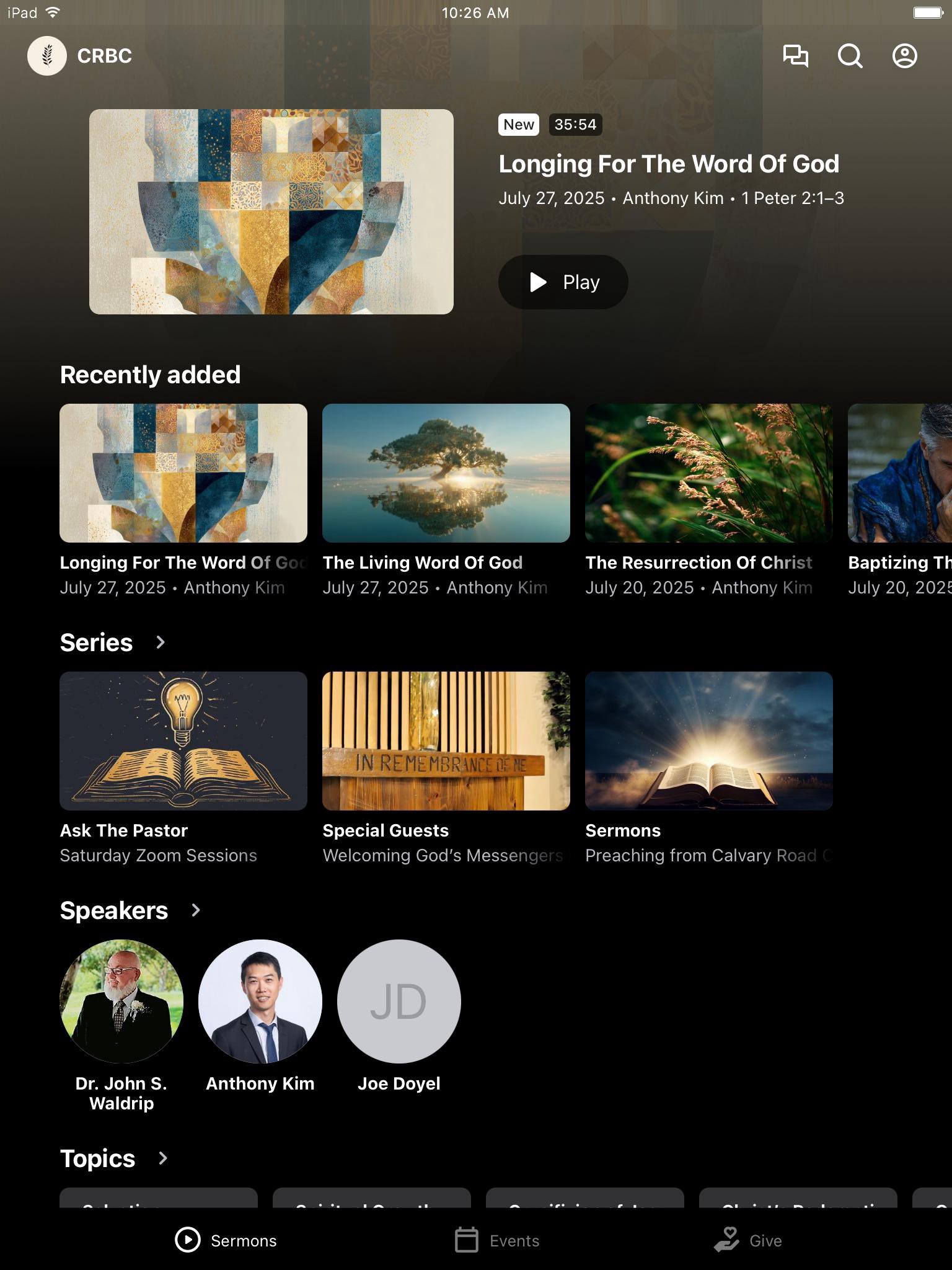 Calvary Road Baptist Church, a Bible-believing Classical Baptist congregation in the San Gabriel Valley, is dedicated to glorifying Jesus Christ through worship, evangelism, and biblical teaching. With this app, you can stream our worship, watch past biblical teaching, view church events, and connect with our community of believers. Come visit us for worship! Rooted in God’s inerrant Word, we fulfill the Great Commission by sharing the Gospel and making disciples!