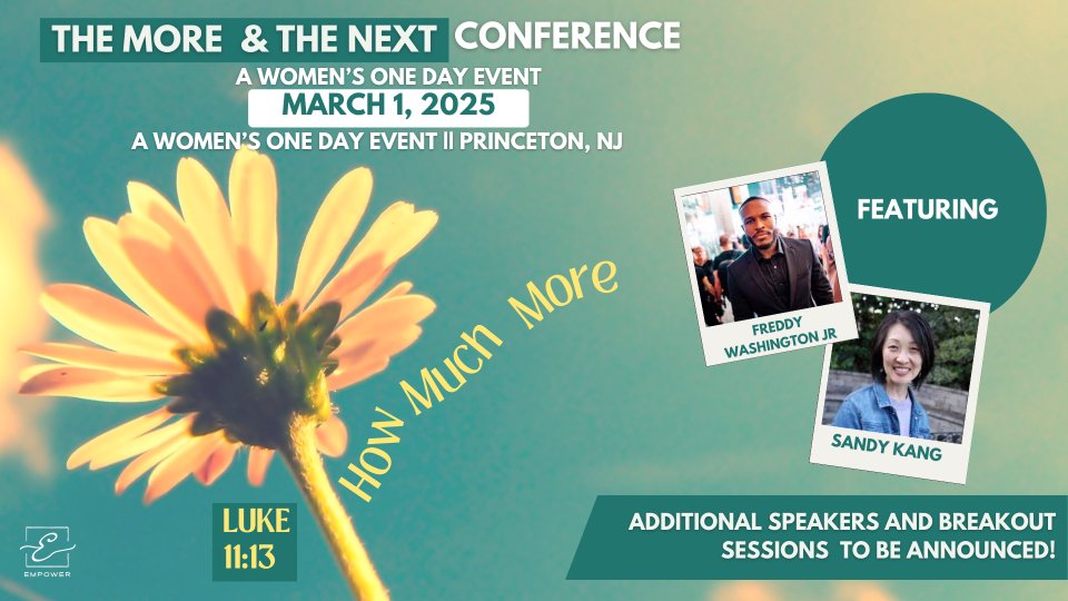 Join us as we attend the Christian & Missionary Alliance One Day Women's conference hosted by Empower at Princeton Alliance Church in Princeton NJ. We will be bringing a group of women from Crossbridge and will be setting up car pools to the event. This is an all day event - anticipate leaving at 7/7:30 AM and arriving home after dinner. Lunch is included.