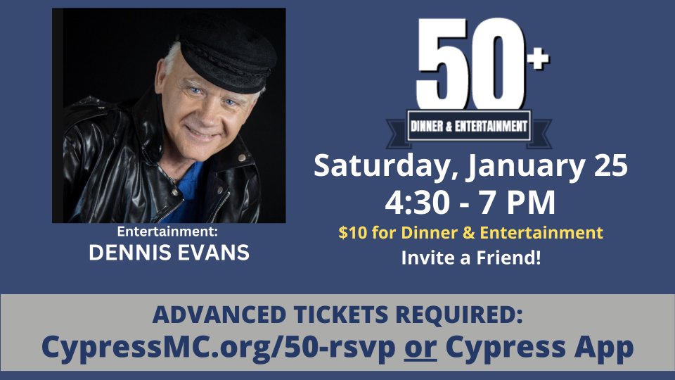 50+ Dinner and Entertainment tickets MUST be purchased in advance. Tickets will not be available at the door. Tickets will be available online, outside of worship 2nd Sunday of each month & at C.A.P.S. on Thursdays. Tickets sales will close at midnight Tuesday, January 21. Advanced tickets helps for us to be able to plan our evening accordingly. Thank you for your assistance. We look forward to seeing you!