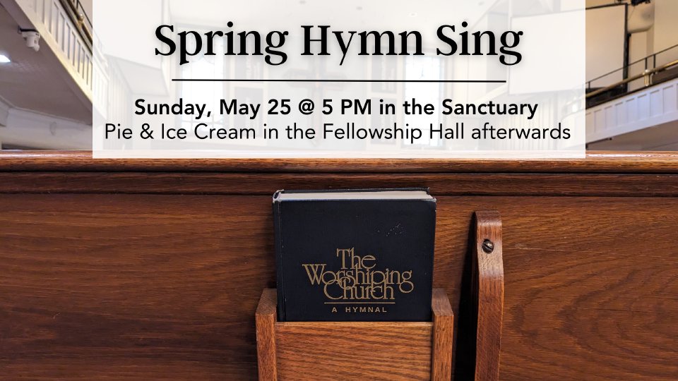 Join us on Sunday, May 25 at 5 PM in the Sanctuary for a Hymn Sing. You won’t want to miss this time of praising the Lord together with hymns from various eras. We are also preparing a Men’s Chorus. Be sure to stay afterwards for delicious pie and ice cream in the Fellowship Hall.