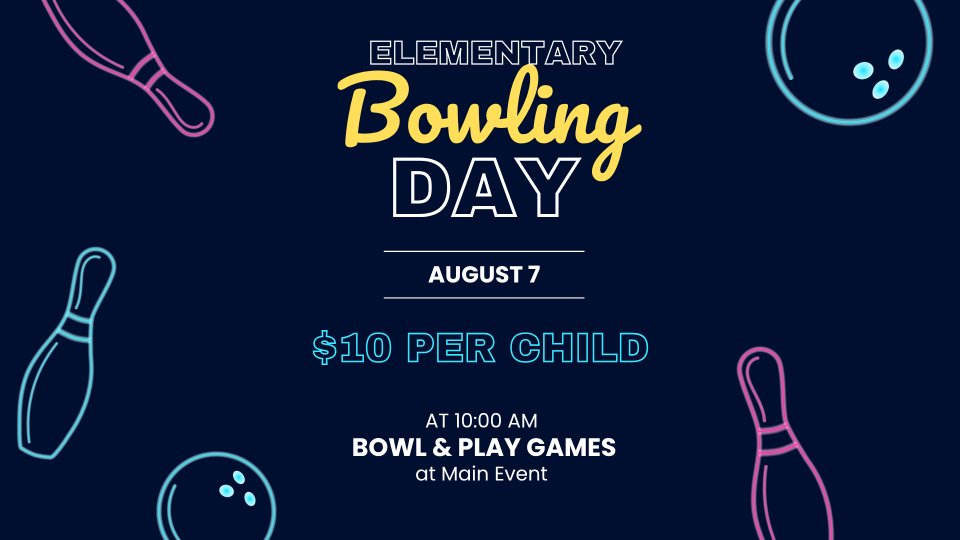 Elementary Families: come to Main Event and join us for bowling and games! Register your kids and join the fun- lunch included!!