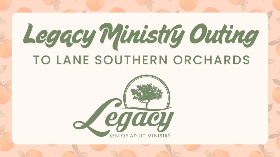 Join us for a visit to Lane Southern Orchard in Fort Valley, GA! We will have lunch at Buckner's Family Restaurant before returning home. We will depart from the church at 8AM and should return by 4PM. We hope everyone can join us!