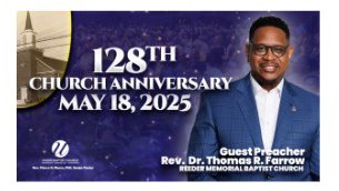 Make plans to join us in the Sanctuary for our 128th Church Anniversary. Rev. Dr. Thomas Farrow from Reeder Memorial Baptist Church in Charlotte, NC will be our guests. This year's colors are pink and ivory.