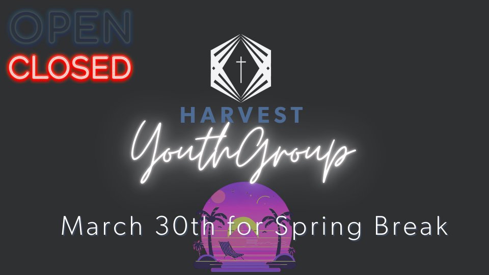 No youth group for Spring Break. See you on April 6th!
