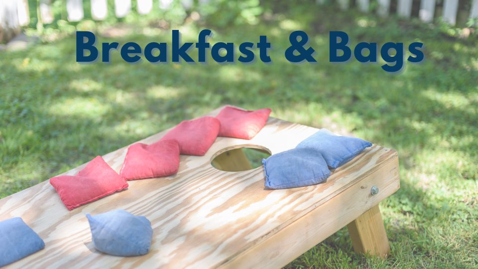 Breakfast and Bags is a great opportunity to connect with other guys in our church and an introduce guys in our church. We will have a hearty breakfast, hear a devotional, and spend time playing cornhole. This is a great opportunity for you to both connect with guys from your small group to connecting with guys you work with or guys in your extended family. Dad's feel free to bring your son if they are in Junior High or High School.